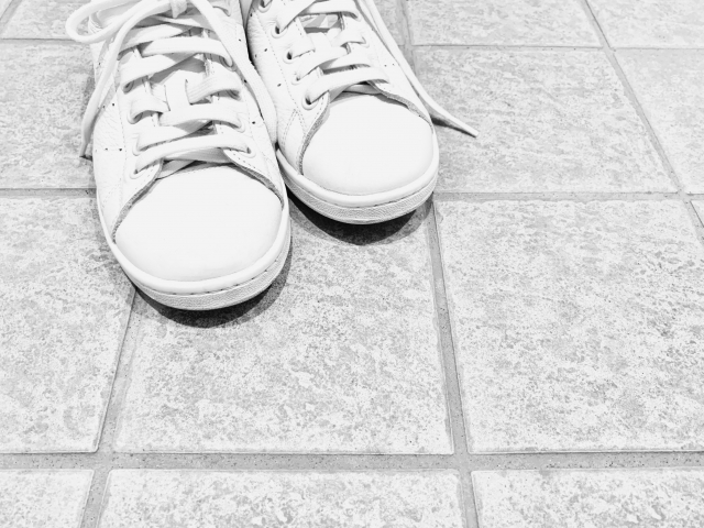 シンプルに白いスニーカーなどを合わせると、意外とよく合います。