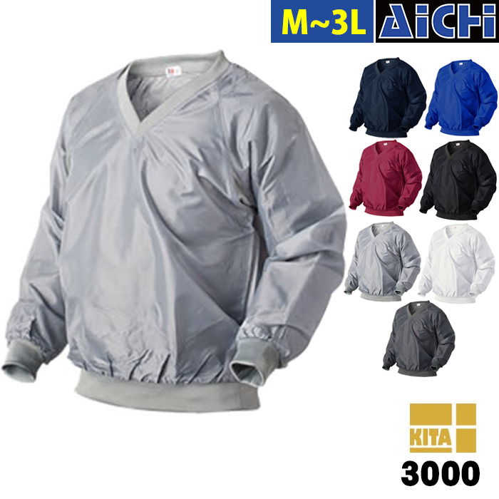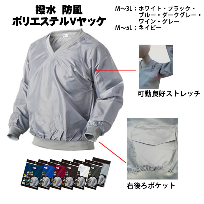 KITA 喜多 ヤッケ 3000 ポリエステルVヤッケ M〜3L | Vネック かぶり 上着 撥水 風よけ ポケット 紺 黒 グレー 白 ワイン M L LL 3L