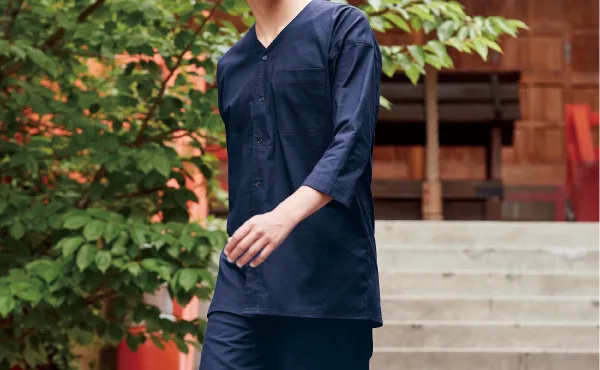 和の空間にマッチする無地の鯉口シャツは、居酒屋や和風飲食店のユニフォームにぴったりです。